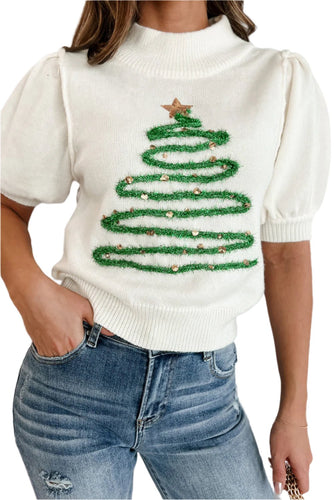 Stripe Dropped Short Sleeve Lightweight Knitted Sweater