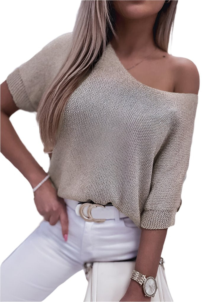 Khaki Short Sleeve Knitted Light Weight Sweater Top