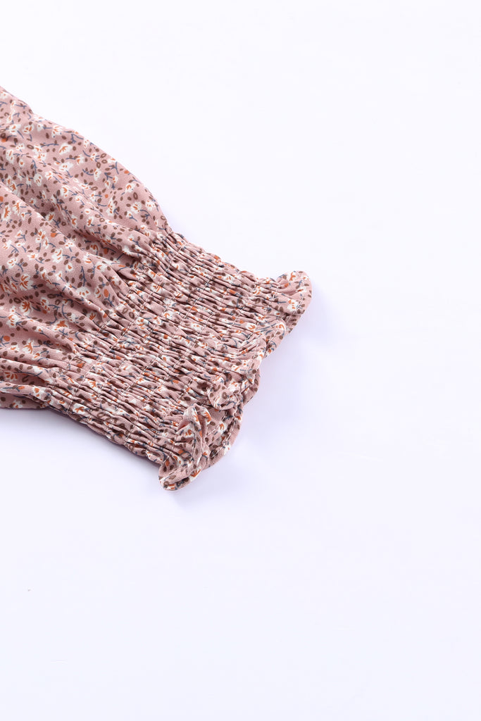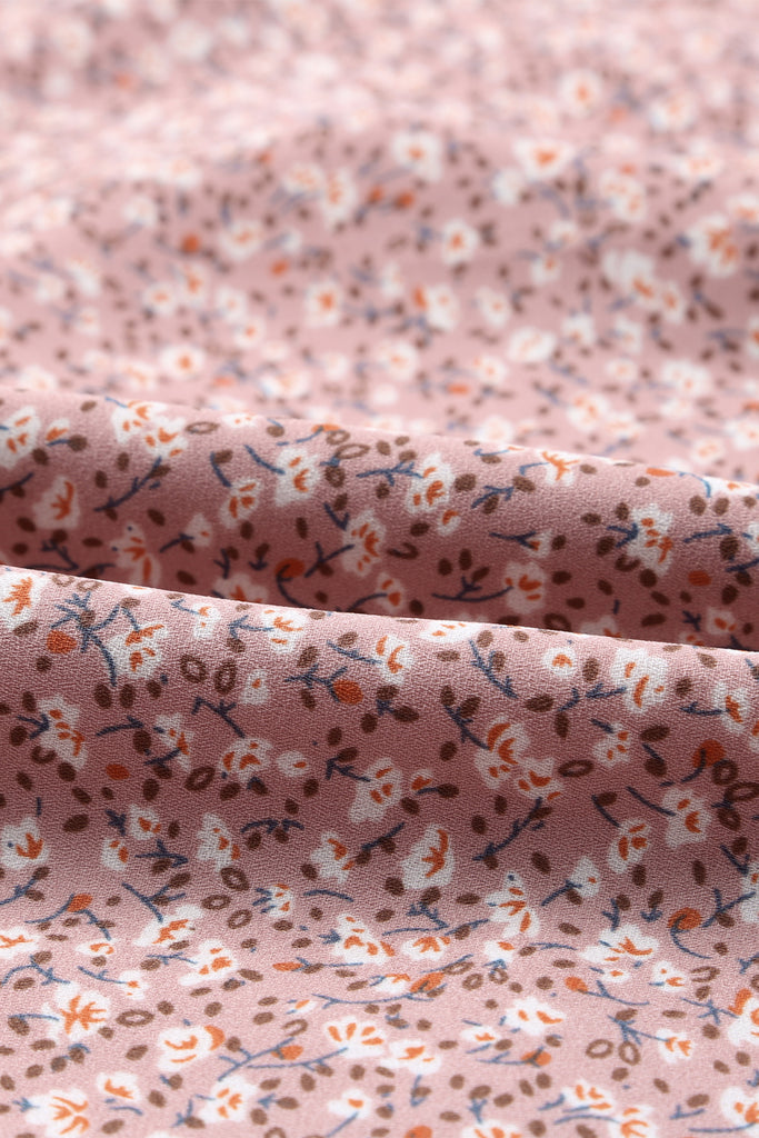 Pink Boho Floral Print Front Tie Ruffled Long Sleeve Blouse