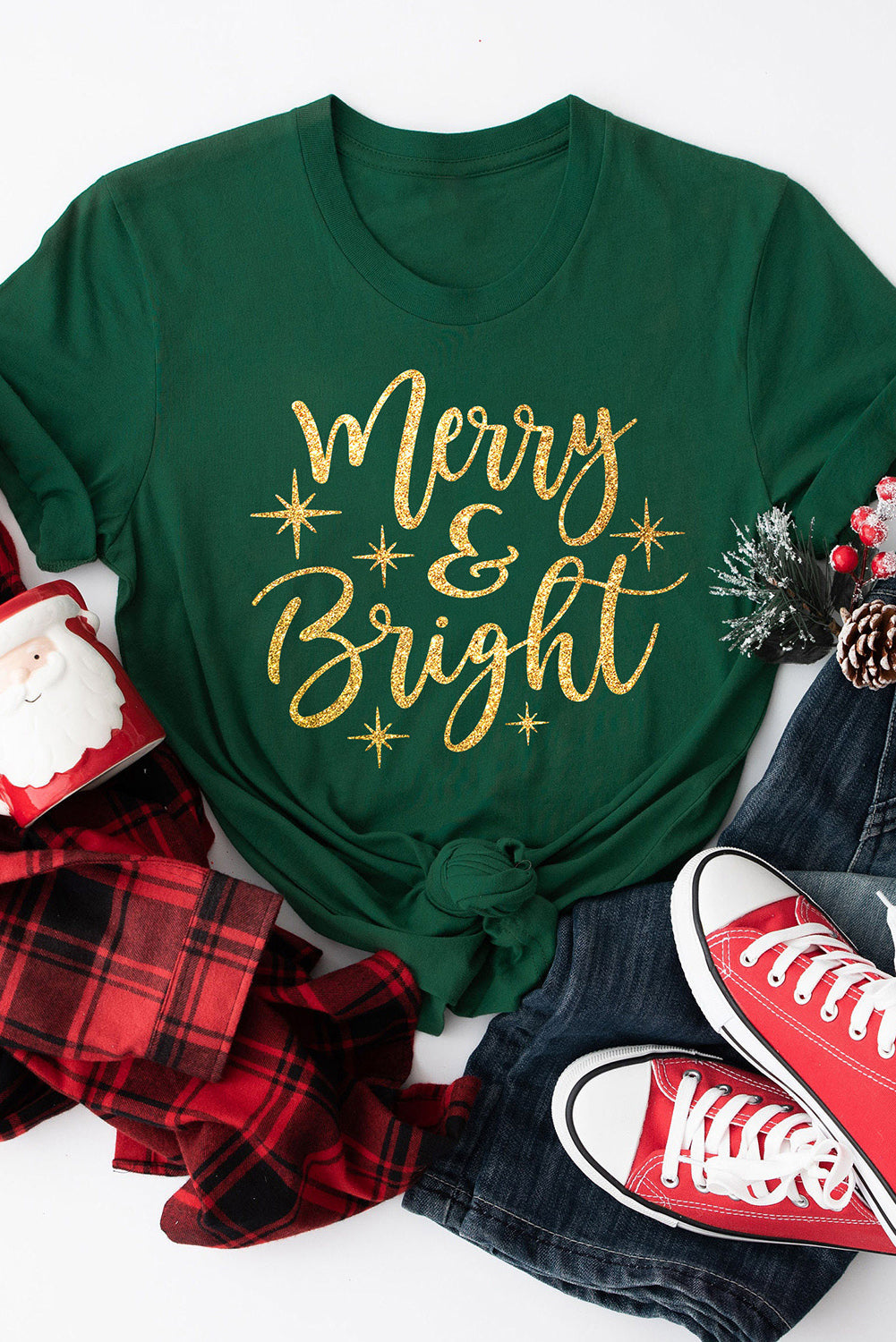 Green Merry & Bright Starry Graphic Tee