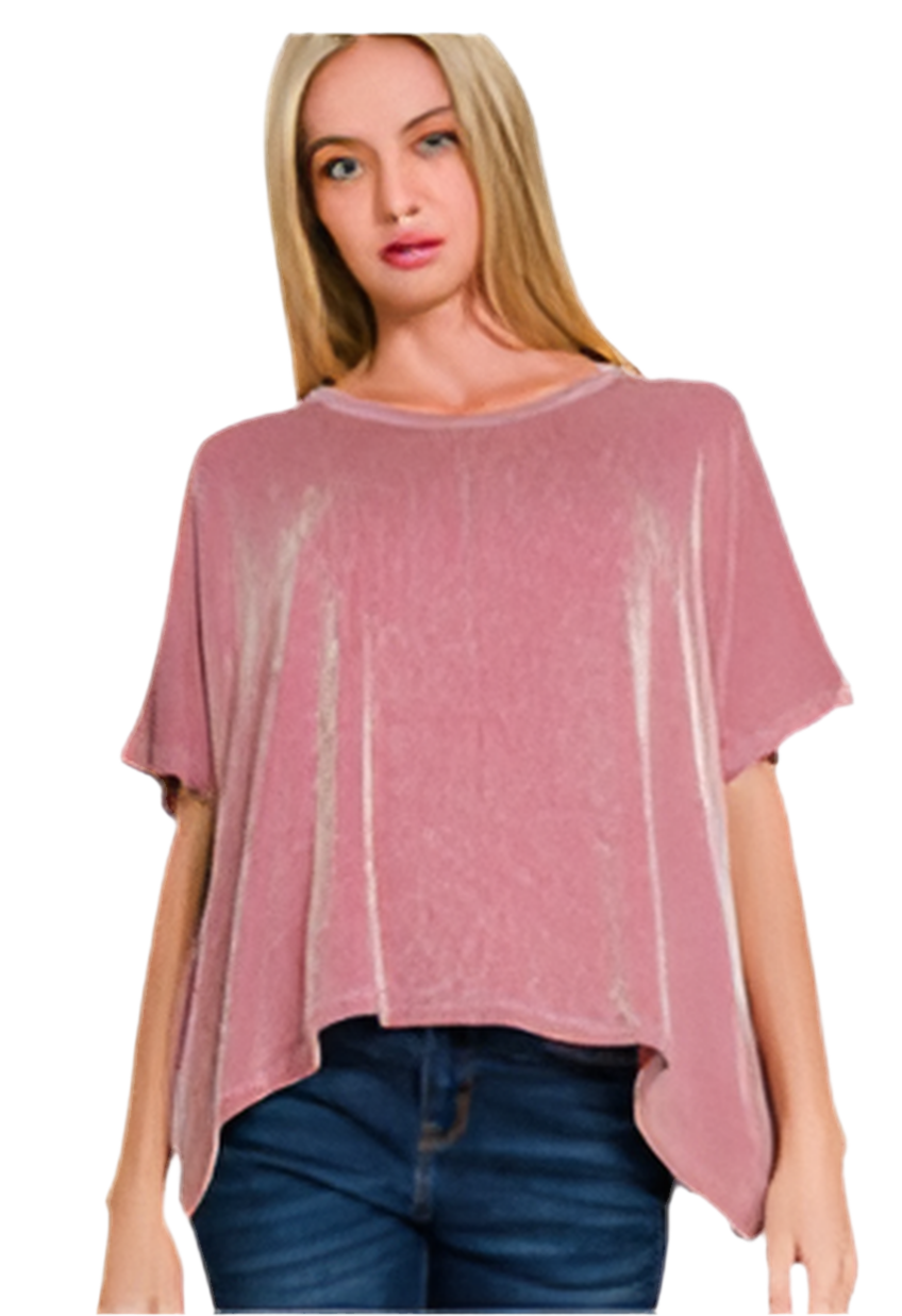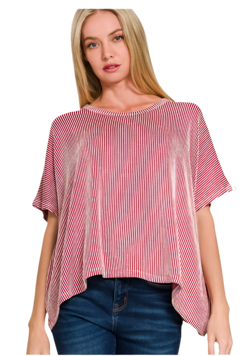 RIBBED STRIPED OVERSIZED SHORT SLEEVE TOP